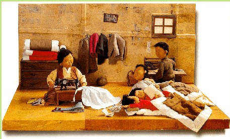 비좁은 방 한칸에 온식구가 모여있습니다.