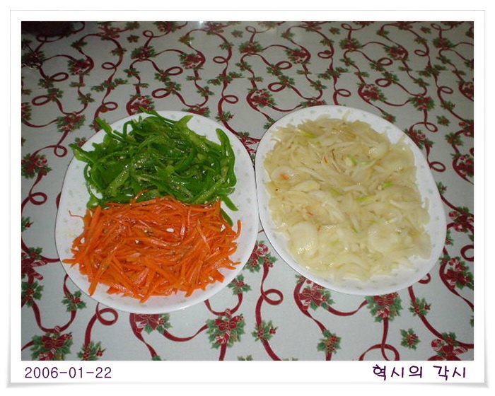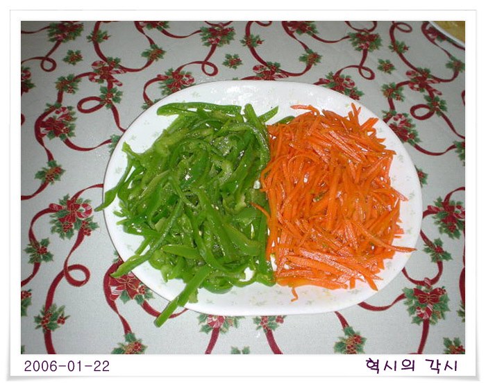우선 피망,당근,양파를 취향대로 썰어