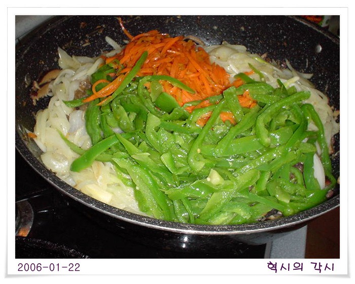 준비해 볶은 다음, 불려놓은 당면을 같이